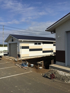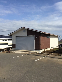 | ガレージだけというのは他の趣味の人達もいるので、もう少し汎用性の高いものが良いとのことになり、 店舗・事務所等の多目的スペースとすることで申請、3棟作りましたが、おかげ様ですべてご契約いただいております。 |