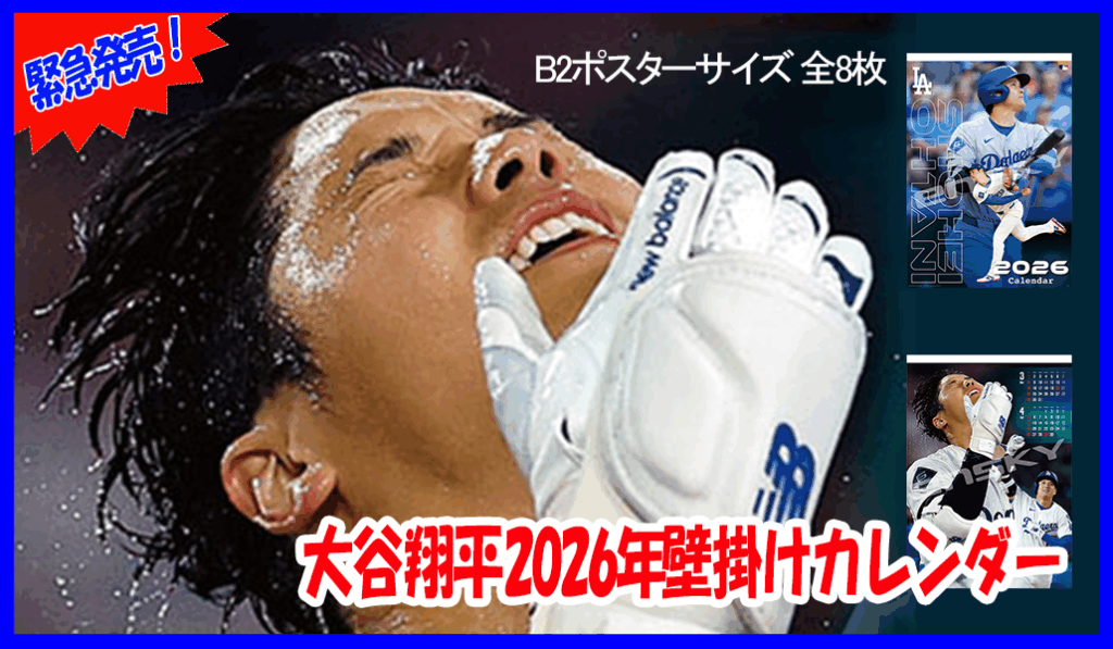 唯一無二の歴史的偉業が世界中から注目を集め、今やMLBの最高の野球選手、スーパースターです。5年連続でオールスターゲームに出場し、ドジャース移籍2年目での、今シーズンの記憶にも記録にも残る気迫あふれるシーン満載のB2サイズの大判、ポスターカレンダーです。
